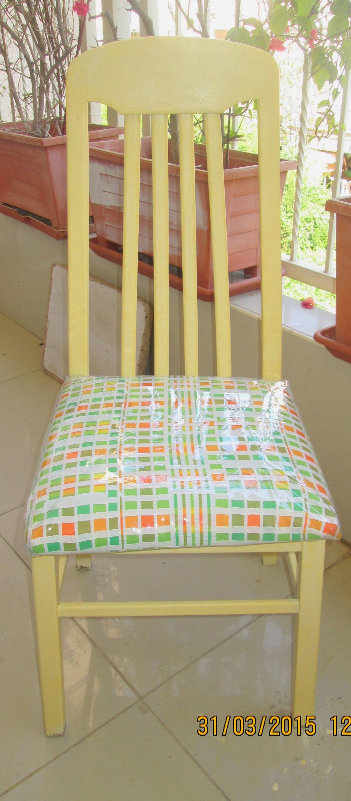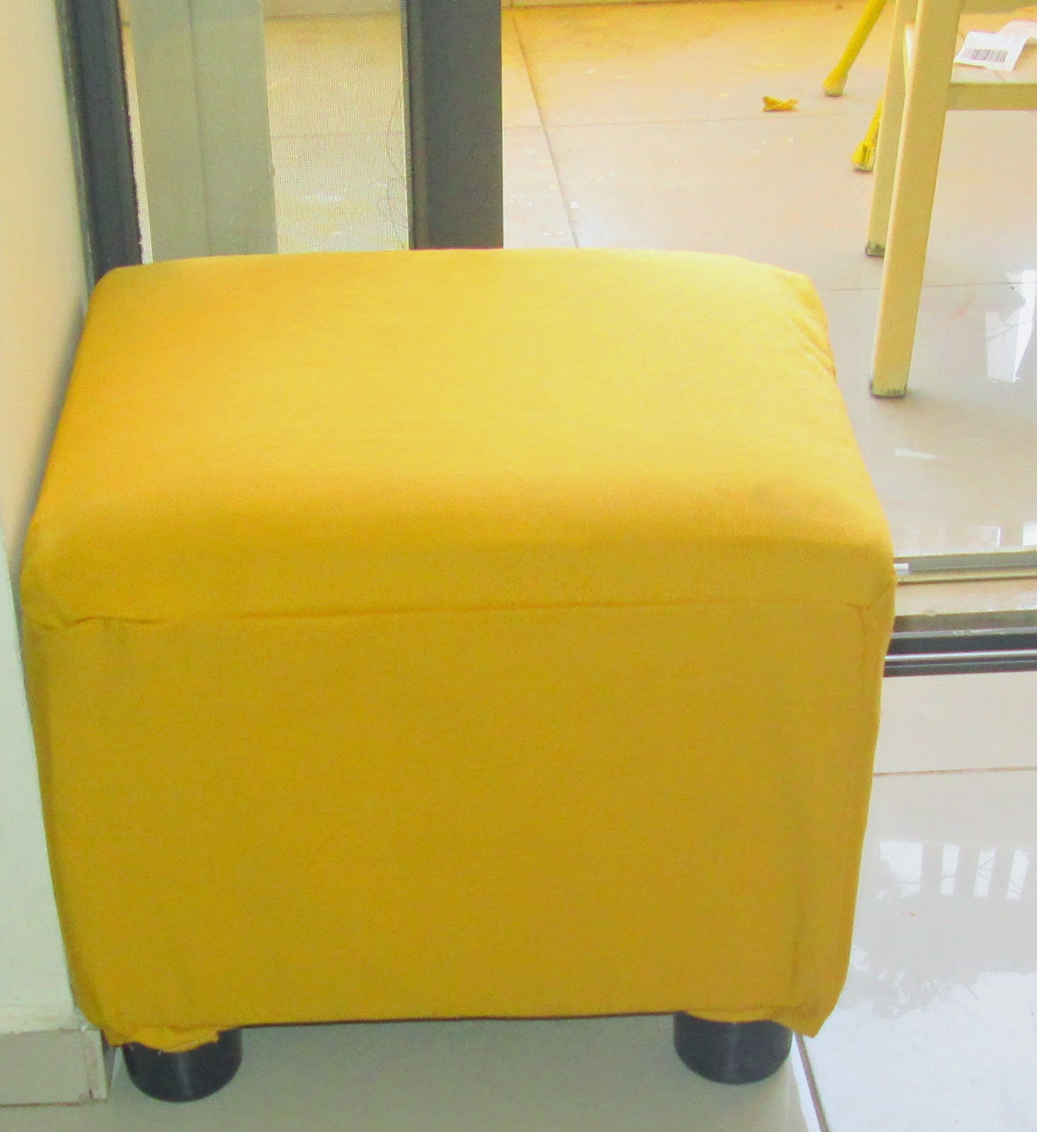 כדי לתת "זריקה" של צהוב גם בסלון המחובר למרפסת, רפדתי הדום ישן שהיה לי באותו צבע