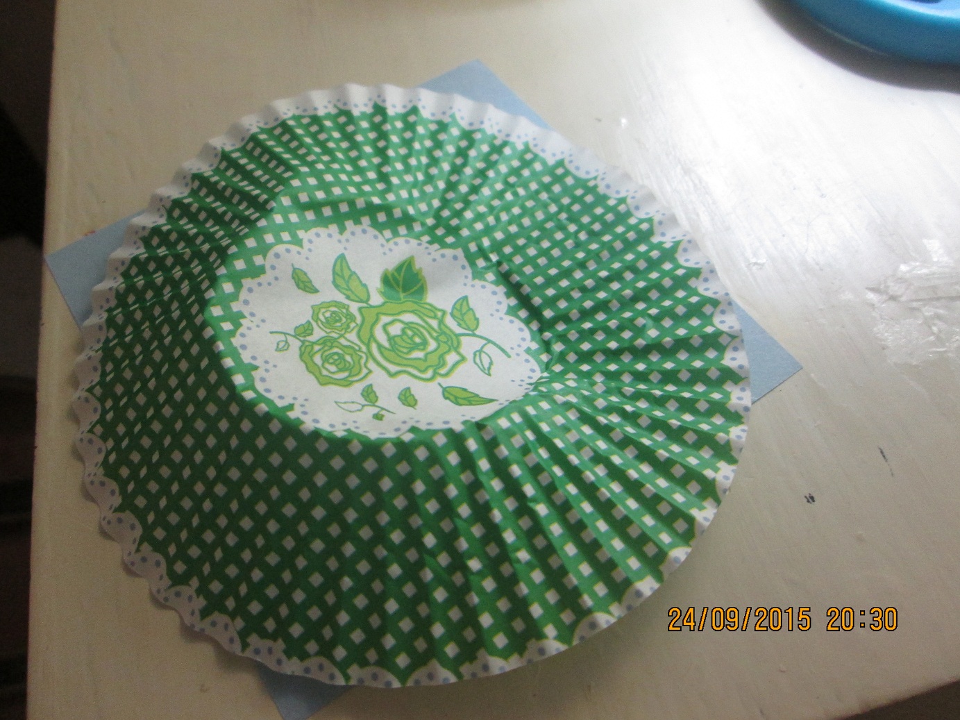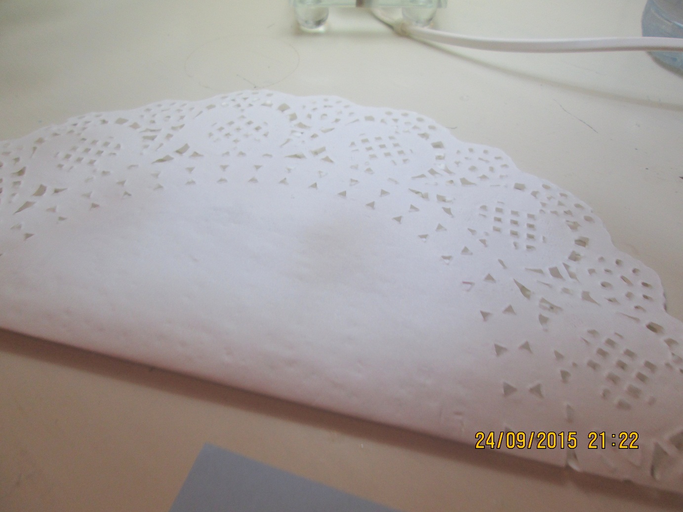 ומדביקים מעליה את המפית תחרה השניה שהכנו, מקופלת לשניים.