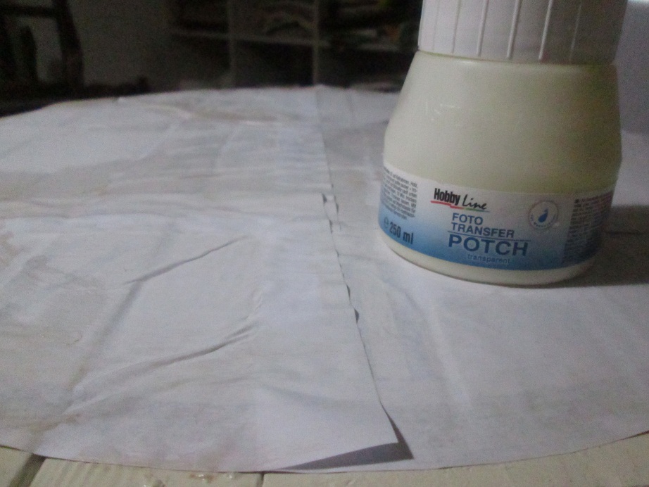 מורחים פוטש על העץ ומדביקים את התמונה כשחלקה המצויר כלפי מטה